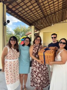 Associados e associadas de Petrolina e região marcaram presença, nessa sexta-feira (28), no almoço de confraternização promovido pela AMEPE. Foi uma tarde de descontração e muita troca entre a magistratura do Sertão. Organizado pelos coordenadores regionais Thiego Dias Marinho e Elisama de Sousa Alves, o encontro contou com a participação da vice-presidente da AMEPE, Ana Veras, e da conselheira Roberta Viana Jardim. Ao final, foram sorteadas cestas natalinas entre os presentes. Os ganhadores foram os juízes Lucas e Juçara.
